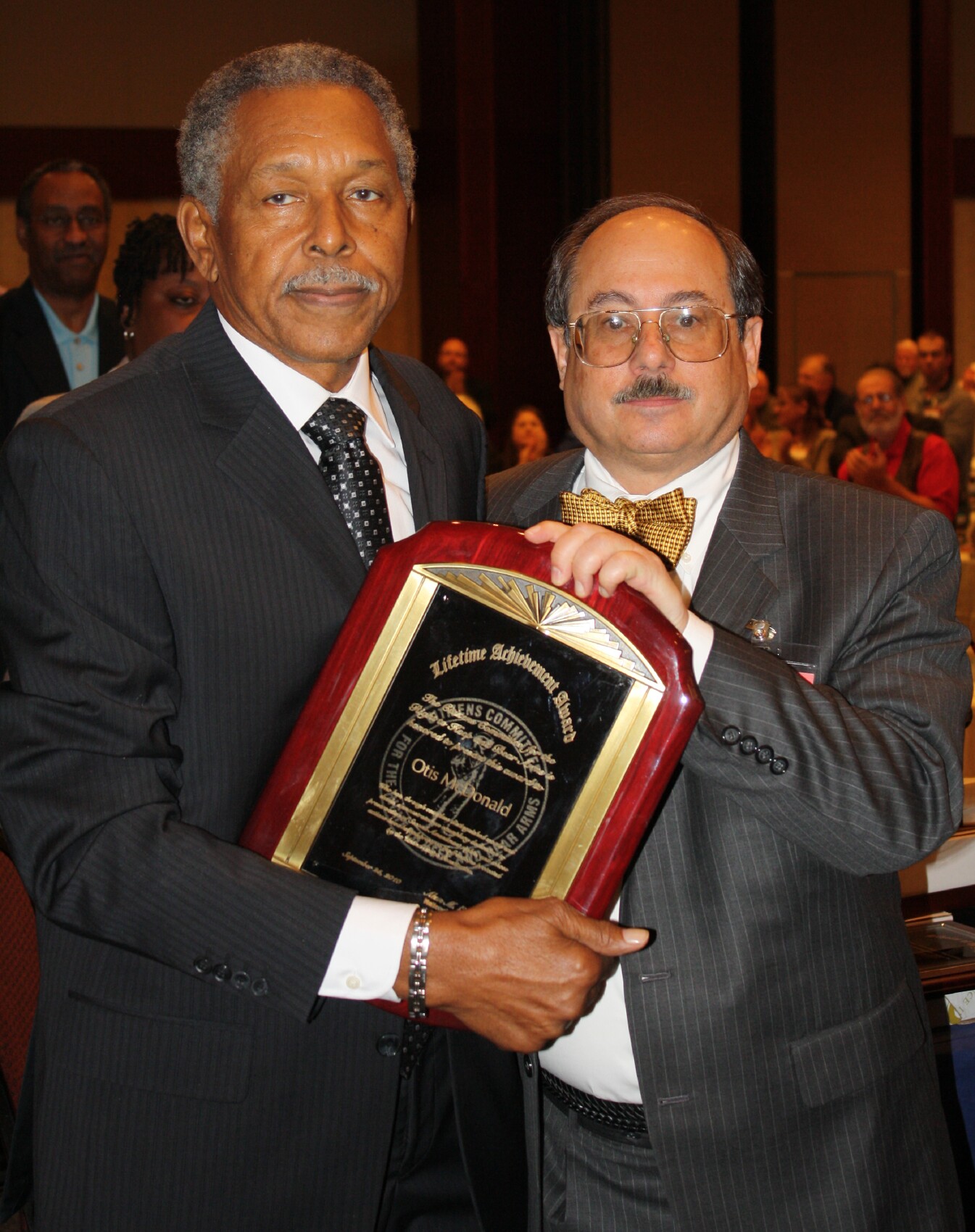 Otis McDonald (left) accepted an award from SAF’s Alan Gottlieb during the Gun Rights Policy Conference in Chicago three years ago.