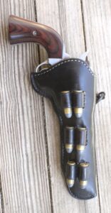 The Freedom Arms single action will work in any holster for the Colt Single Actions. It is shown here in El Paso Saddlery’s duplicate of John Wesley Hardin’s holster