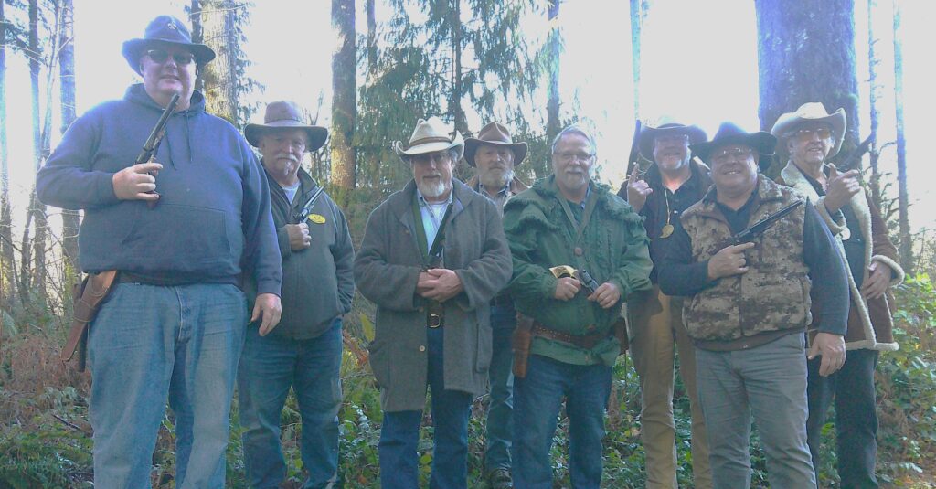Others in our group didn’t do any better. My score was five hits for the ten targets and Mike Moran got the same score while shooting his .44 caliber cap & ball six-gun. But shooter Russ LeFevre won the match with his Ruger Old Army, his score of hitting 6 out of the 10. Russ had shot earlier, while the rest of us were shooting the trail with our lever-guns in a different match. So, hat’s off to Russ, and he won the $$$ which we had set out for this match.