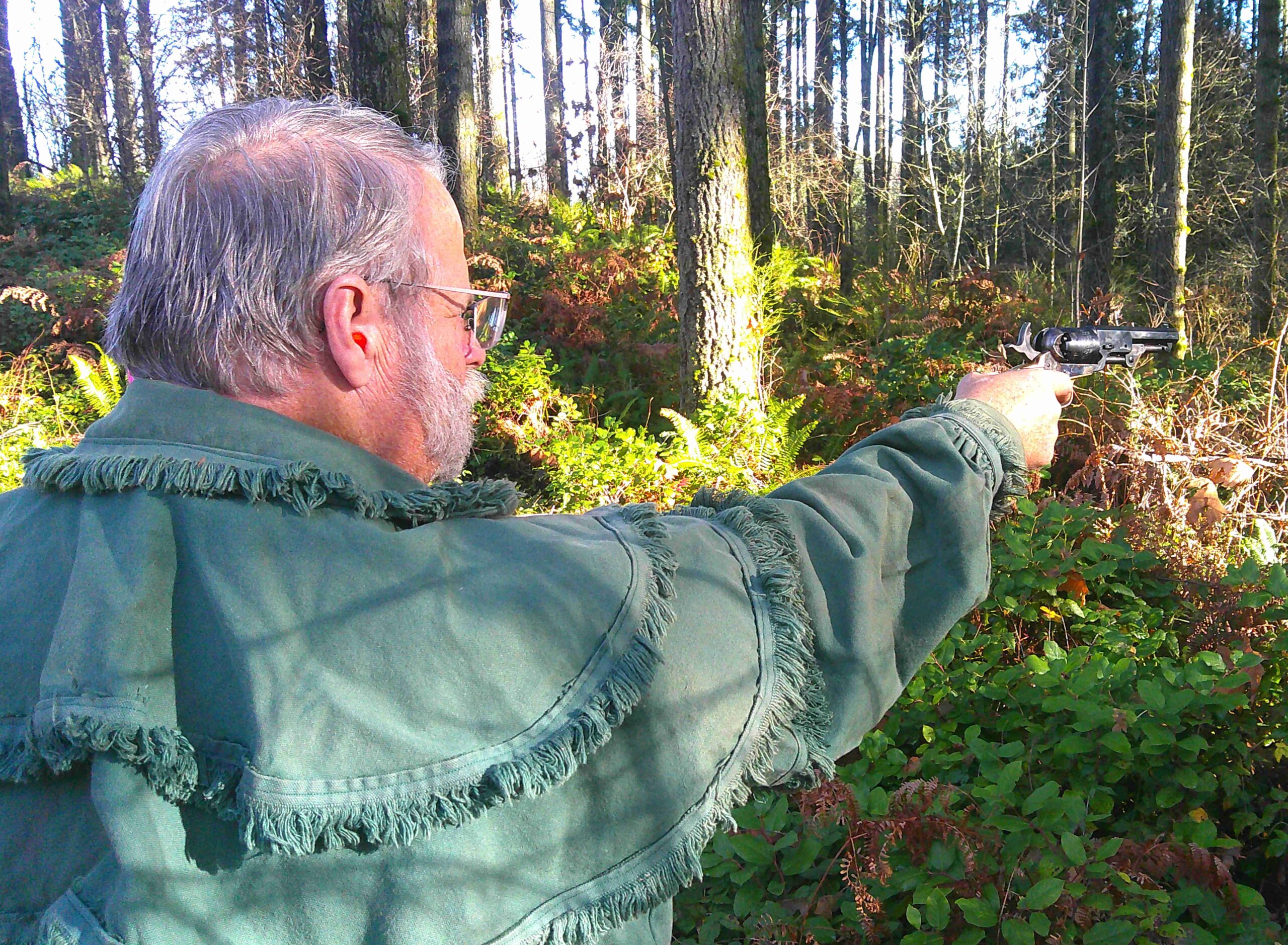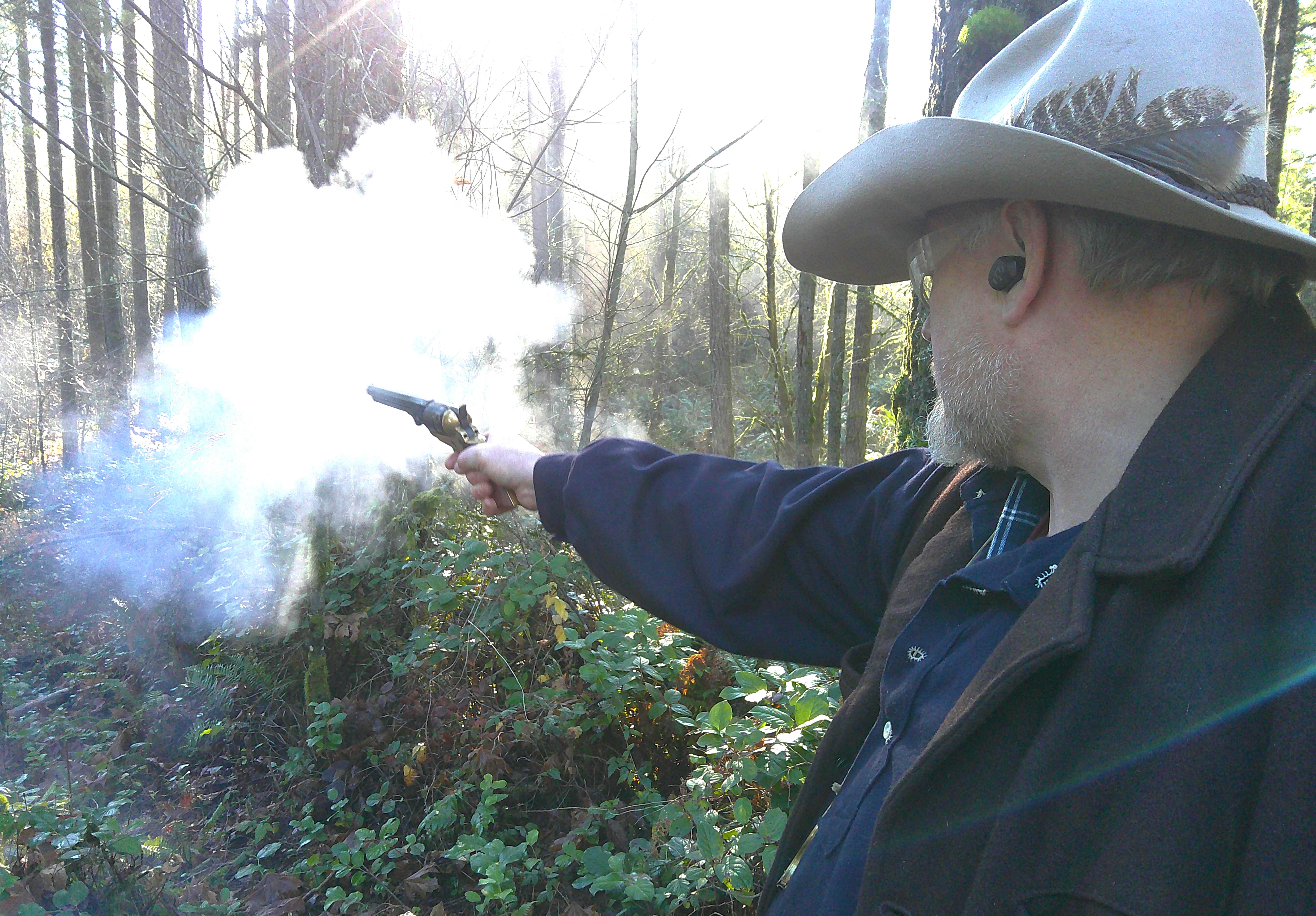 To be prepared for this challenging match, most of us were also practicing our reloading. Perhaps that shouldn’t need practice but reloading a percussion revolver on the trail can be quite a bit different from doing the same reloading while standing at a bench. With the bench, you’ve got a table-top to put all of the accessories on but on the trail all you might have is your pockets. That can certainly make a difference.