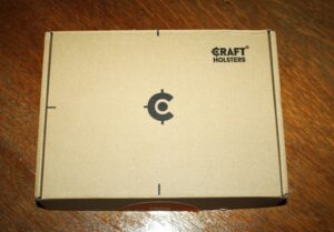 The holster arrived in a black fabric bag, inside of a cardboard box, with some reading material about breaking in the rig and maintenance tips.