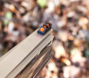 …While the front sight is a high visibility fiber optic sight.