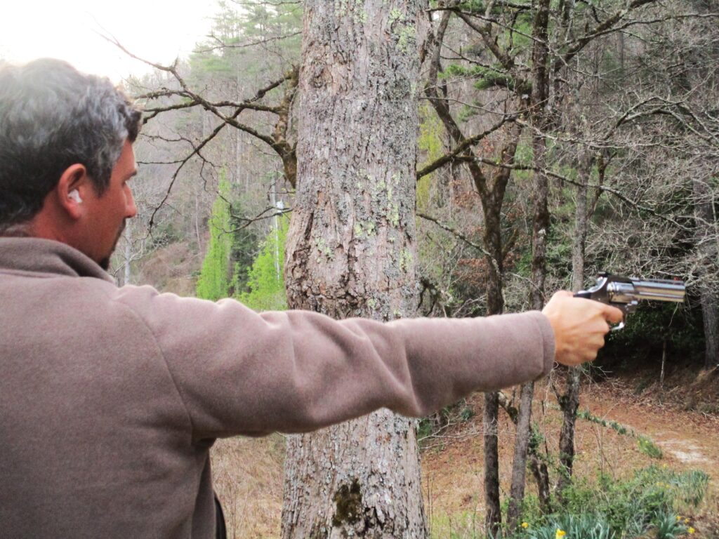 Author’s neighbor Colby Nichols firing the Colt King Cobra .22 Target revolver.