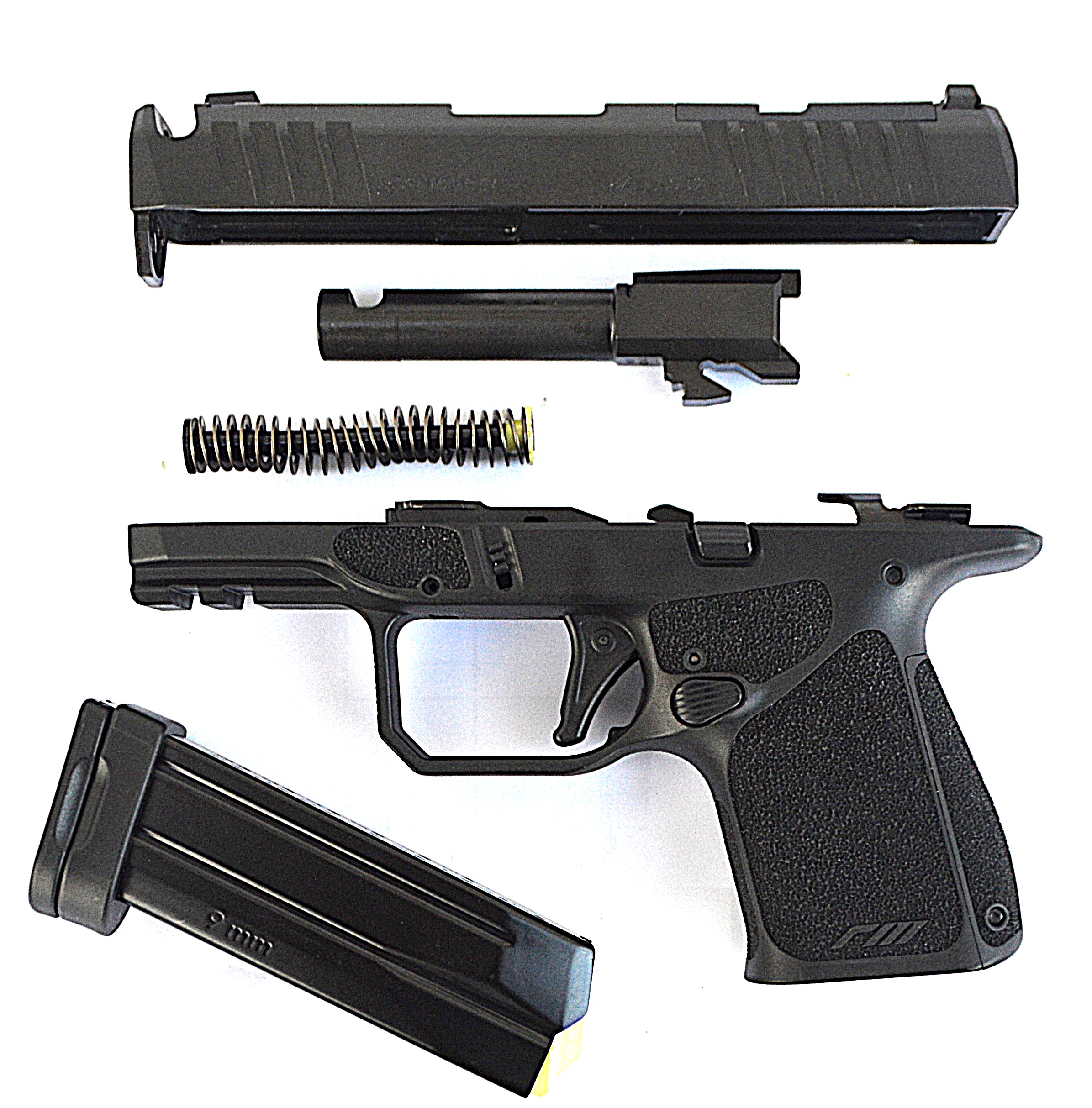 - Construction: nitrocarburized steel slide, polymer frame w/interchangeable backstraps