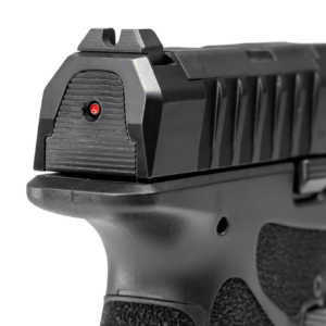 Rost Martin has developed a grip treatment they call the Responsive Grip Texture. It works well and offers a grippy but comfortable firing grip. The pistol is supplied with interchangeable back straps. Many handguns in this price range don’t have any backstrap options. This is a good touch that benefits those with large hands the most. The backstrap and front strap are nicely roughened for a solid hold. There are roughened sections on each side of the triggerguard as well. I like this as it reinforces the need to keep the finger off the trigger until you fire. Not when you think you will fire but when you fire.