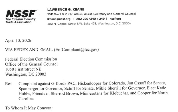 “Giffords PAC has been playing fast and loose with how they are soliciting funds to support themselves and their preferred gun control candidates for elected office,” said Lawrence G. Keane, NSSF’s Senior Vice President and General Counsel. “The FEC’s joint fundraising rules are clear but Giffords ignores them because they believe they are above accountability. Their fundraising misleads consumers by falsely claiming these joint fundraising solicitations are not authorized by any candidates or their campaign committees. Giffords PAC and these candidates are knowingly ignoring mandatory FEC disclosure requirements.”