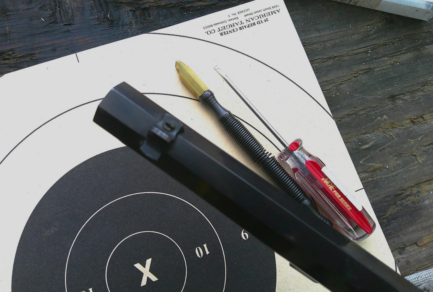 The small screwdriver was needed because the front sights on the Uberti lever action rifles, not the carbines, have a set screw which really should be loosened before trying to drift the sight right or left in the dovetail.  (I have those tools as well but at that moment they were in my pistol shooting bag which was not with me that morning at the range.)