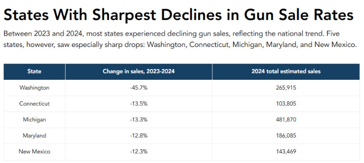 Conservative Ladies of Washington is reporting a “staggering 45.7 percent decline in firearm sales from 2023 to 2024.