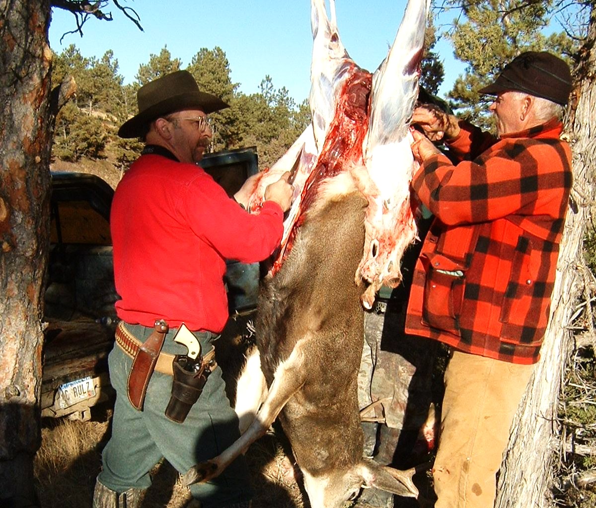 I was photographed taking the hide off of that buck back in camp, and there on my hip was the short Ruger.
