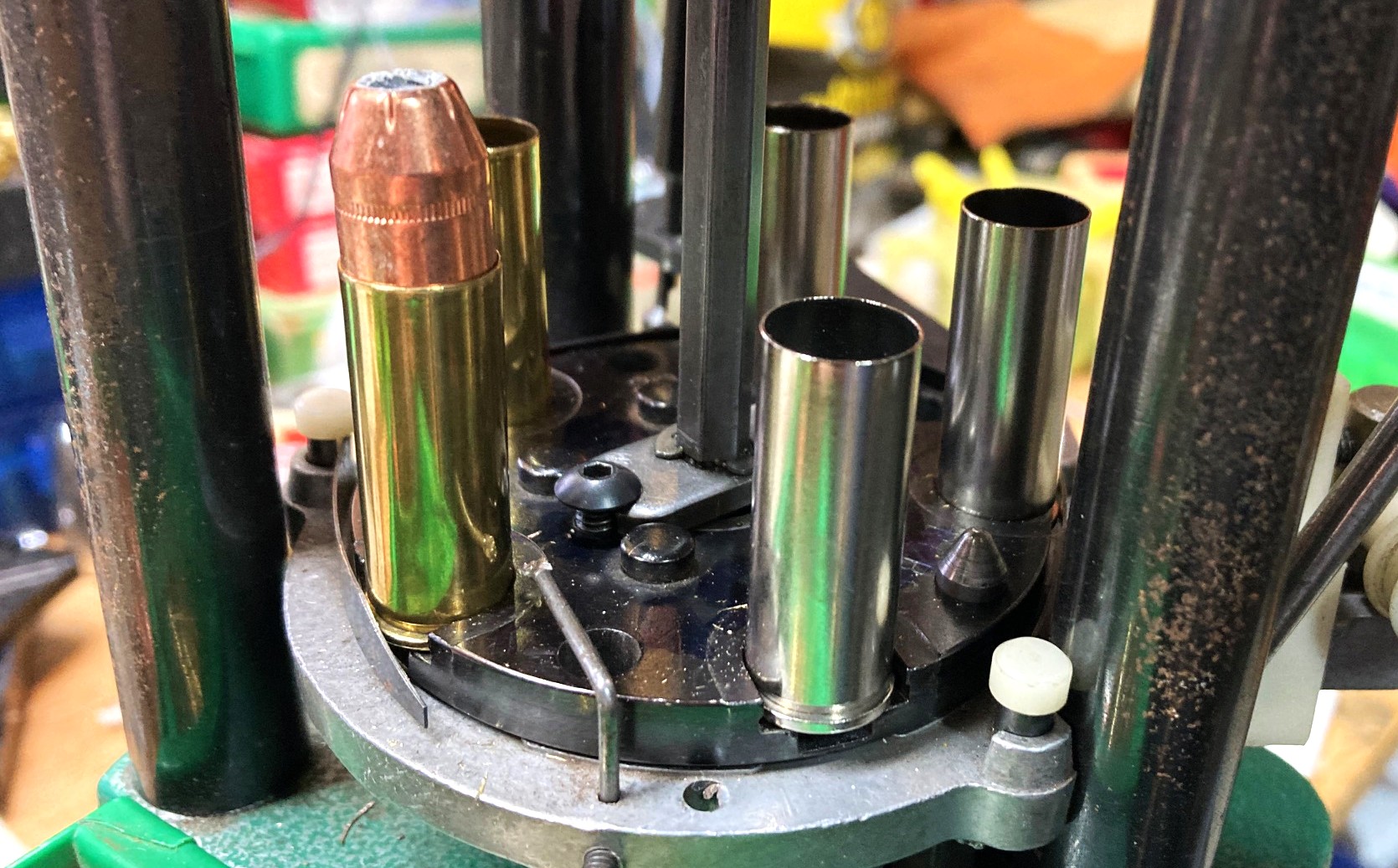A recent batch of reloads in production on the press.