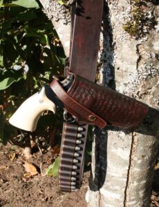 Moving right along, the single-action might be a better choice for wilderness/hunting adventures, perhaps with a slight taint of nostalgia tossed in. I happen to enjoy packing a single-action sixgun in a leather holster carried on a leather cartridge belt with each loop occupied, and there have been one or two occasions when the presence of a big bore sixgun seemed at the time to have been a deterrent to misbehavior.